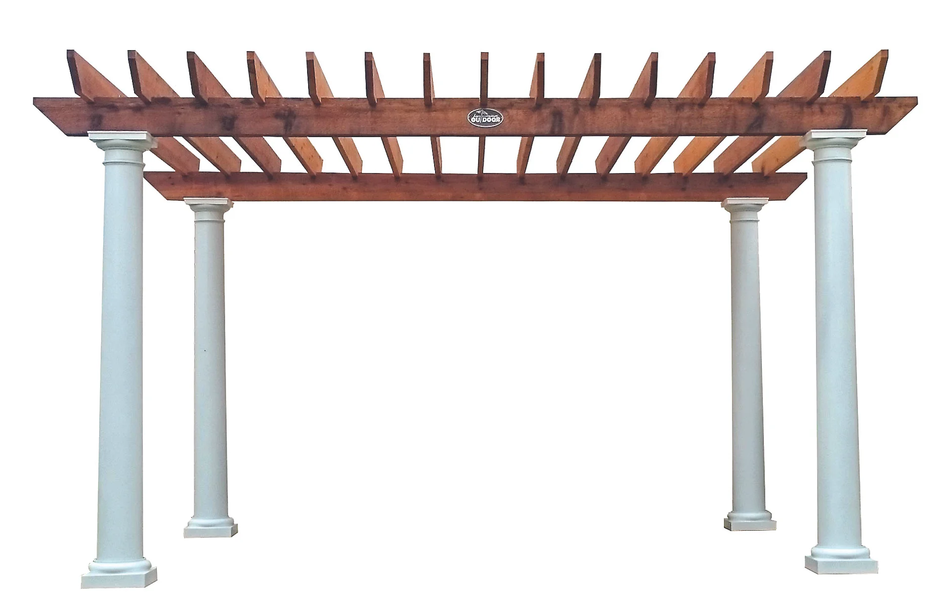 The Tuscan-Style pergola has a traditional flat-topped canopy, accented with 10” round tapered columns that add a European flair to your backyard. The Tuscan pergola, defines your outdoor area leaving plenty of room for dining tables & chairs, conversation seating groups, and outdoor kitchens. Can either be the main focal point or set to one side for an intimate gathering area. Proportional and flowing design creates a room-like feel with distinct layers between elements.